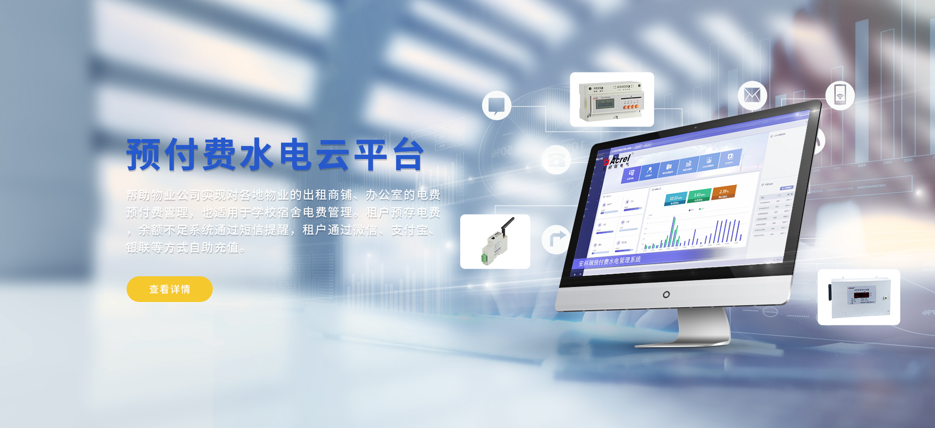 安科瑞提供的解決方案包括Acrel-EIoT能源物聯網云平臺、變電所運維云平臺、安全用電管理云平臺、環保用電監管云平臺智慧消防云平臺、能源管理云平臺、工業企業能源管控平臺、遠程預付費云平臺、餐飲油煙監管云平臺電動汽車/電瓶車充電樁收費管理云平臺、電力監控/無線測溫系統、電能質量治理系統、電氣火災監控系統、消防設備電源監控系統、防火門監控系統、應急照明和疏散指示系統、智能照明控制系統、醫用隔離電源絕緣監測系統等,幫助用戶實現能源智能化、可視化、精細化管理,提高用能效率和用能安全,為企業節能降耗和實現能源數字化建設提供數據服務。